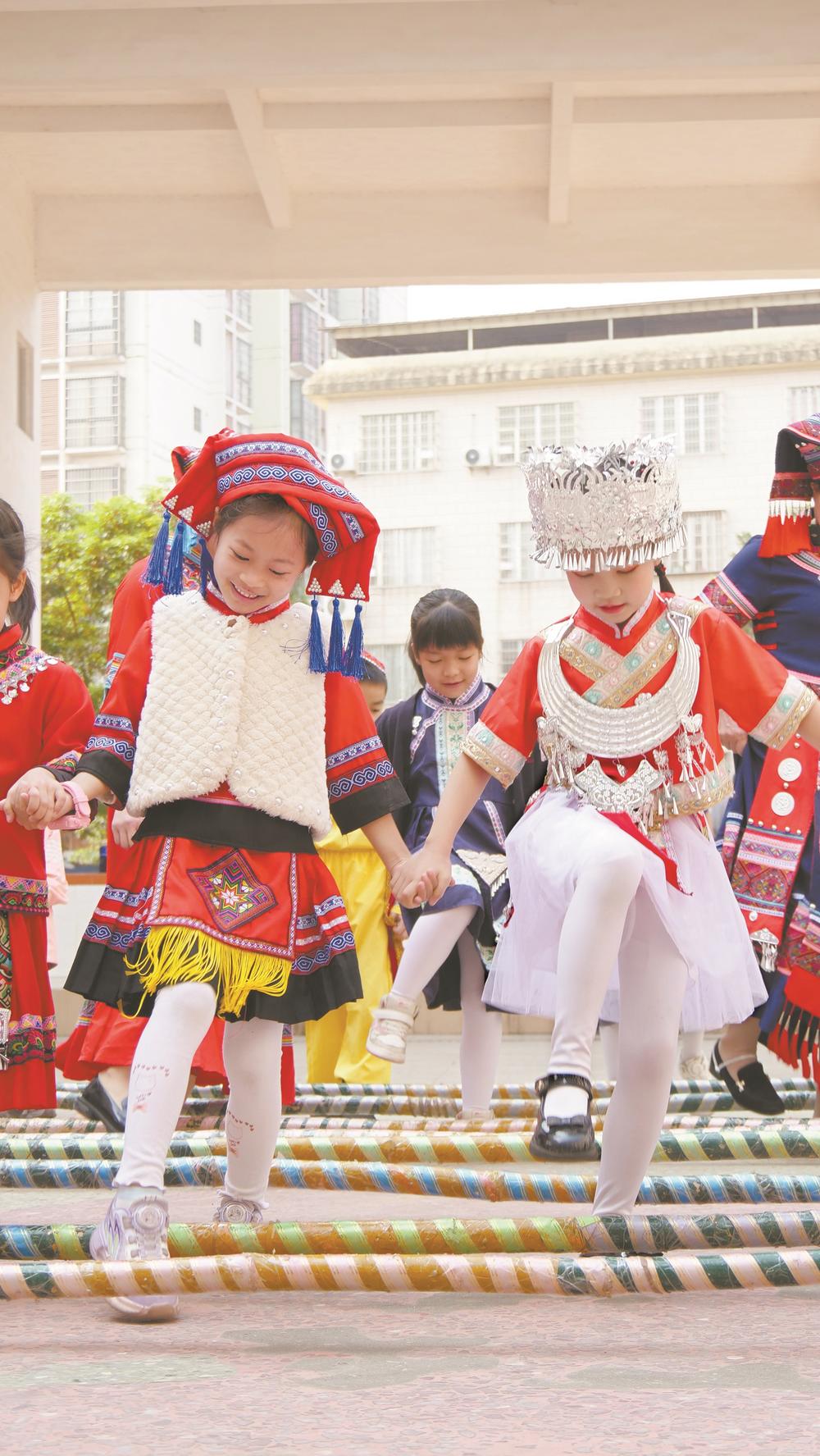跳竹竿舞 。均 颜荣迅 摄