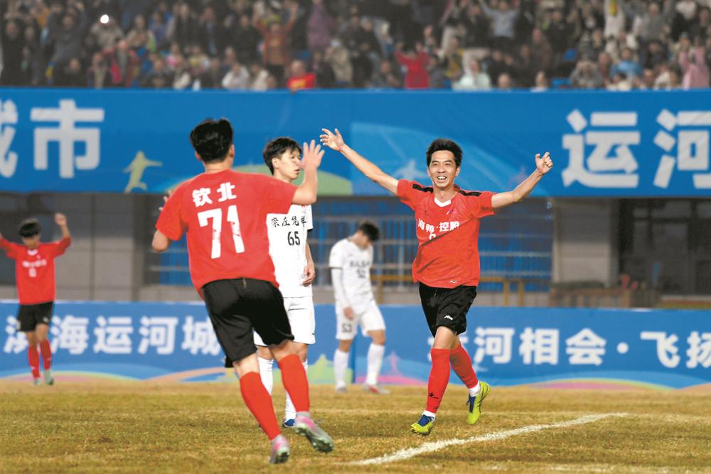 钦北队队员庆祝进球。