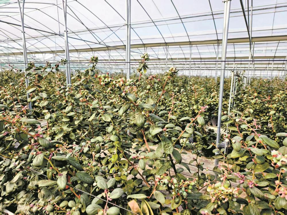 不远处的蓝莓种植基地内,饱满的蓝紫色果实缀满枝头,工人们提着篮子穿梭林间,小心翼翼采摘成熟果实。“基地种植面积960亩,是目前广西规模最大的智能化蓝莓种植基地。”基地负责人李尚介绍,蓝莓市场需求旺盛,目前已小批量上市,预计2月底迎来大批量集中上市,届时将为周边500余户村民提供采摘、分拣等岗位,助力村民灵活增收。