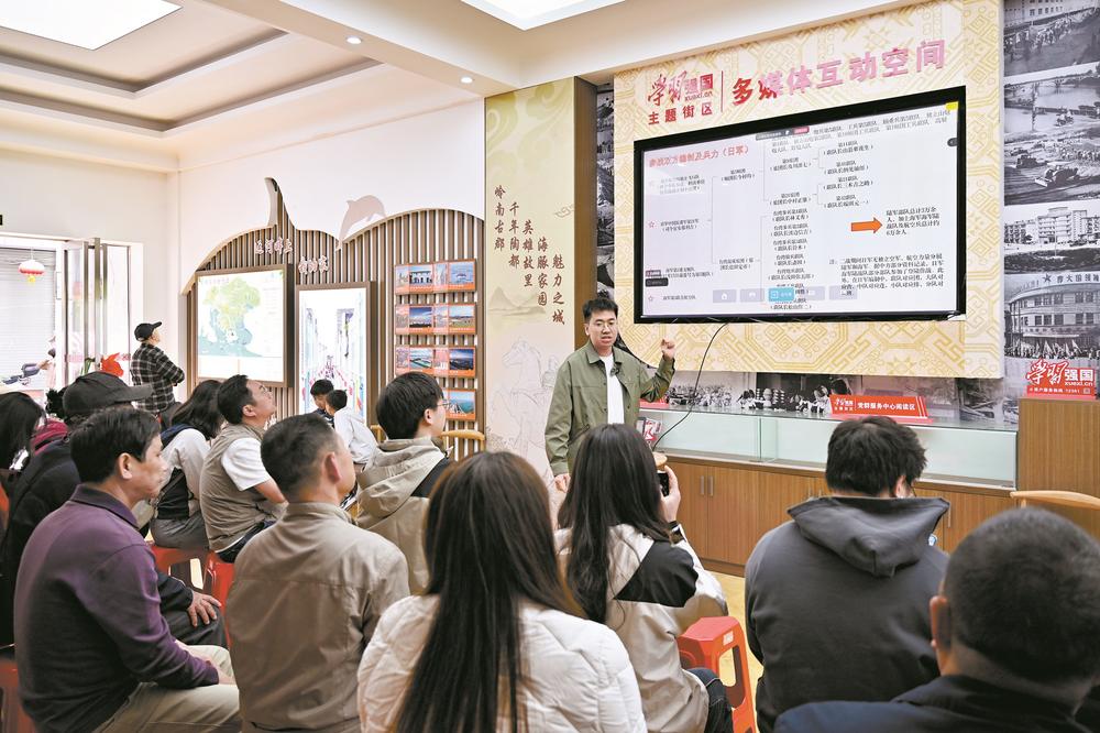 2月19日,钦州老街中山路骑楼街历史文化街区热闹非凡,钦南区党群服务中心内一场别开生面的“钦州讲古”活动吸引市民游客驻足聆听。曾因“捐资造航母”引发全国关注的钦州青年陈虞文回到家乡,以“桂南会战龙门反登陆战中的中日两军装备简析”为主题,开展军事历史沙龙。