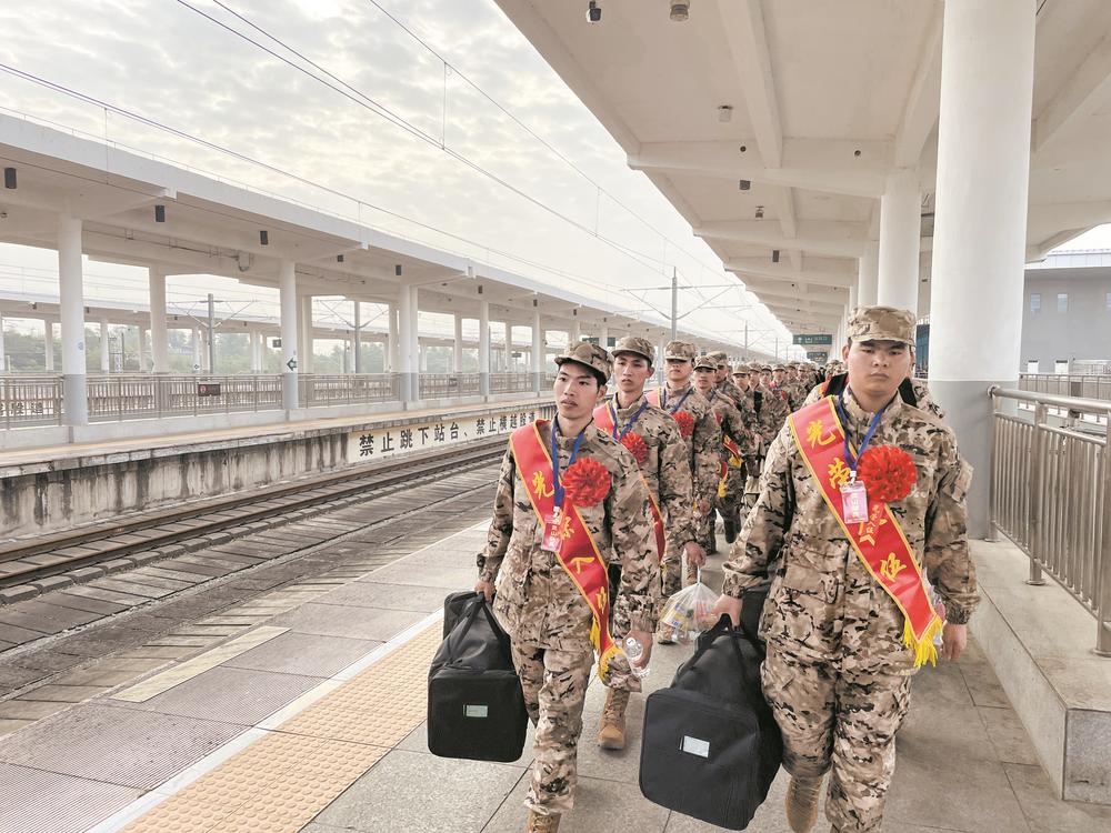 新兵们身着戎装,精神抖擞,奔赴军营。