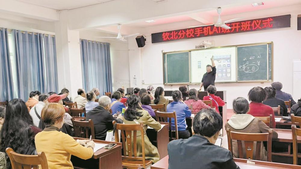 在数字化浪潮奔涌向前的今天,老年教育如何与时俱进,帮助“银发族”拥抱人工智能?市老年大学钦北分校用一堂新潮的手机AI课,作出了生动回答。
