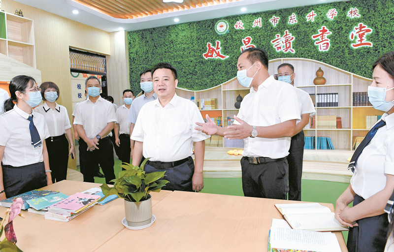 林冠强调,百年大计,教育为本。今年以来,钦州持续推动民生改善,科学布局一批学校,加大力度促进教育优质均衡发展,努力办好人民满意的教育。要坚持以习近平新时代中国特色社会主义思想为指导,深入学习贯彻习近平总书记关于教育的重要论述,进一步增强“四个意识”、坚定“四个自信”、做到“两个维护”,全面贯彻党的教育方针,全力以赴做好新时代教育工作,为党育人、为国育才,培养德智体美劳全面发展的社会主义建设者和接班人。