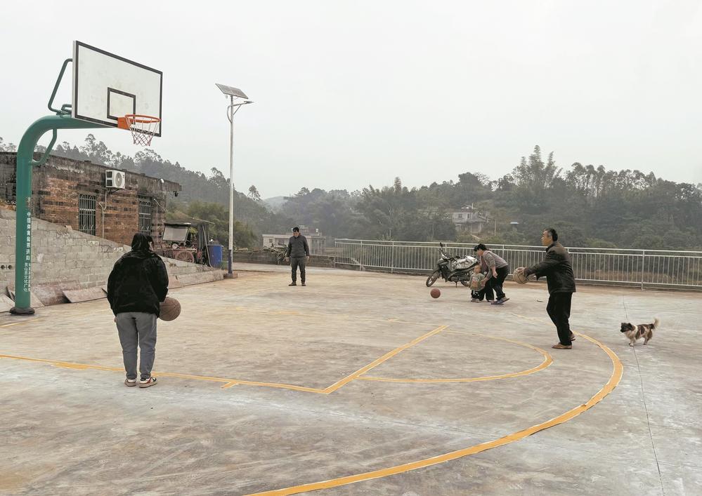 村民在新建的篮球场运动。