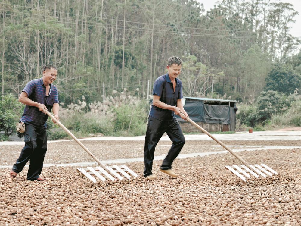 村民在晾晒莪术。