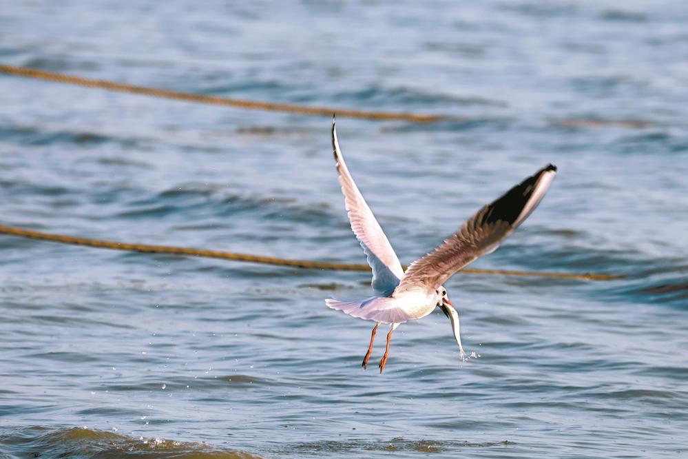 碧海蓝天,青山绿水,无垠星辰……凭借温暖的气候和优越的自然环境,钦州三娘湾海域每年都吸引数以万计的海鸥前来越冬栖息,它们掠过金色沙滩,追逐银色浪花,时而轻盈点水觅食,时而展翅编织天空的诗行。游人在海滩上近距离观赏,笑语与鸥鸟的清鸣交织,渔船的剪影与翻飞的羽翼同框。这不是遥远的风景明信片,而是每天生动上演的自然剧场,海鸥与暖阳、美丽的大海以及当地渔民、游人“同框”,构成一幅人与自然和谐相处的亮丽风景。