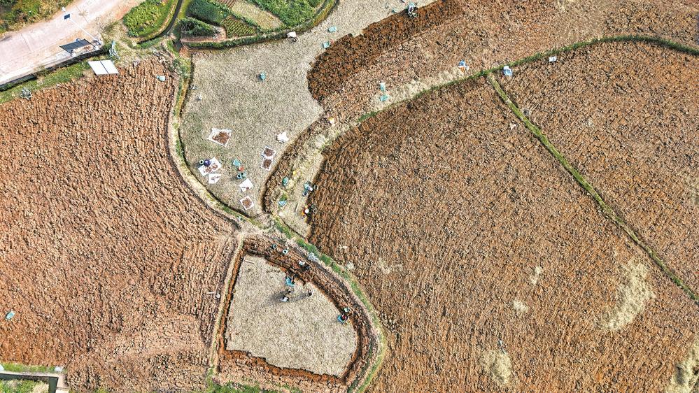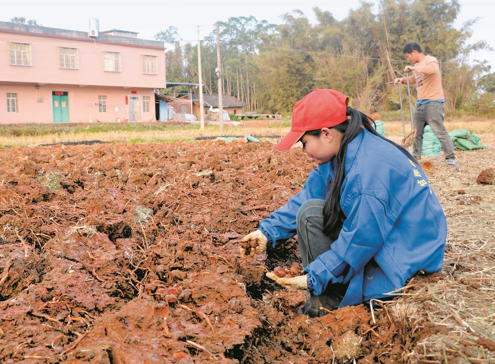 寒意阵阵的冬日,灵山县陆屋镇教坪村的马蹄种植示范基地,却是一番热火朝天的景象。