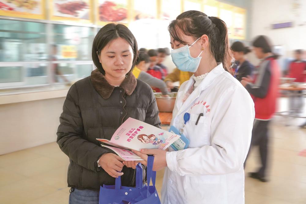 发放健康宣教手册。