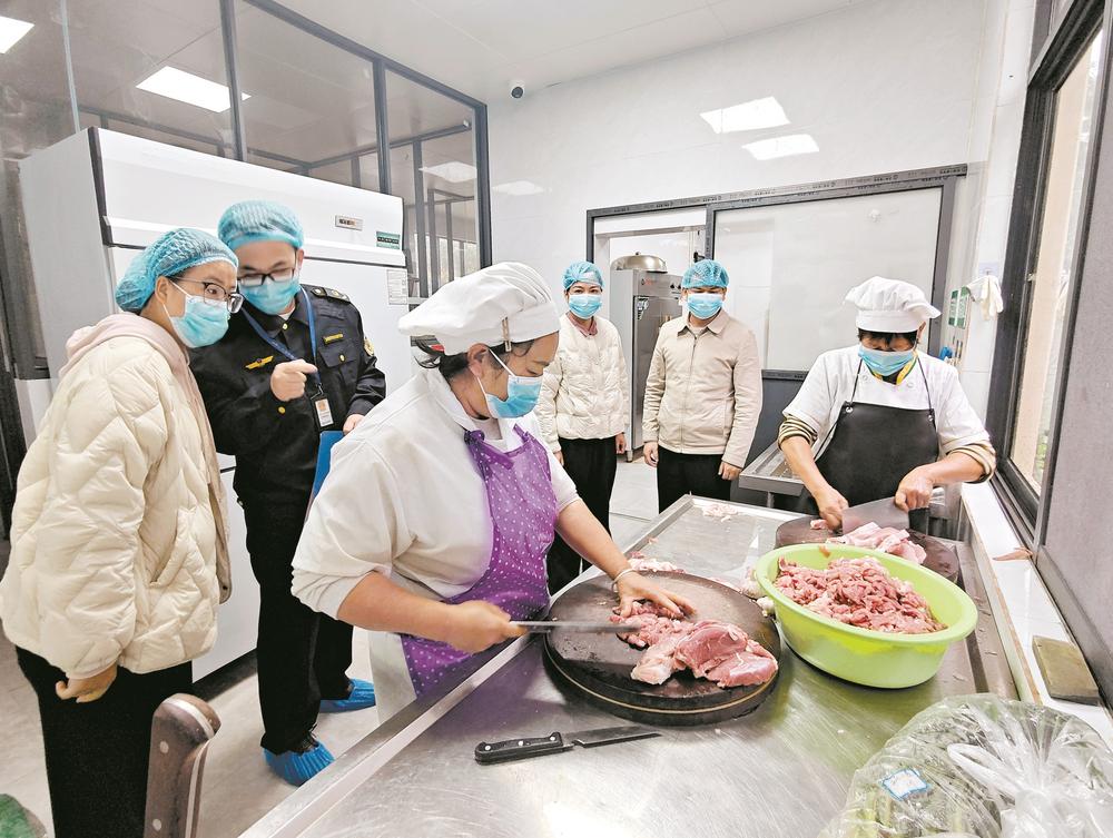 “请出示一下餐具消毒记录和食品留样记录。”“集中用餐陪餐制度落实情况怎么样?”检查中,督查组坚持问题导向,采取“四不两直”的方式,深入各学校食堂后厨操作间、食材存储区、备餐区等重点领域,聚焦食品进货查验、从业人员健康管理、餐饮具清洗消毒、食品留样、食材储存、台账管理等关键环节开展“全链条”体检。对发现的个别学校留样记录不规范、操作间环境卫生不达标等问题,当场下达整改通知书,明确责任人和时限,确保整改闭环到位。