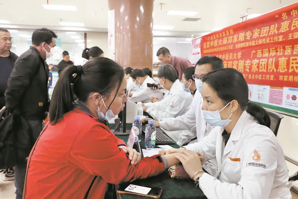 近日,广西“名中医八桂行”邓家刚专家团队走进灵山县中医医院开展义诊、学术讲座、教学查房系列活动,为当地群众送上家门口的中医药健康服务,也为医院医护人员传经送宝,助力基层中医药事业高质量发展。