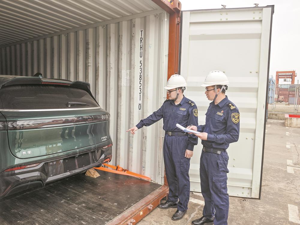 钦州港海关综合业务科科长常朋介绍,汽车加速“出海”对通关速度提出了较高要求,该关通过建立“一企一策一档”帮扶机制,指导企业提升知策享惠能力;实施“提前申报”“抵港直装”通关便利化政策,打造“一站式”监管模式,保障新能源汽车产品顺利出口。
