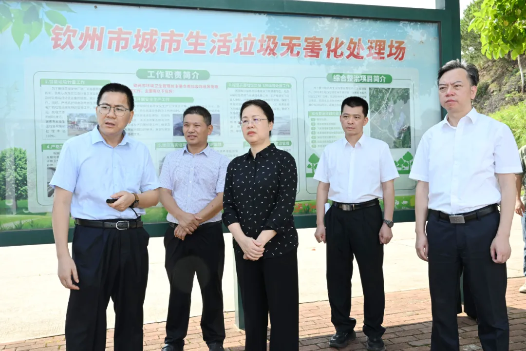 在钦州市生活垃圾无害化处理场,钟畅姿认真听取垃圾焚烧处理、医疗废物处置、地下水状况调查检测、重金属污染物防控措施落实以及填埋场运营管理等情况汇报。她指出,生活垃圾填埋场是环境治理的重要环节,要高度重视涉重金属污染物防控工作,严格规范垃圾填埋作业流程,加强对渗滤液处理设施的维护和管理,防止重金属污染土壤和地下水。要系统科学谋划,完善应急预案,提高应对突发环境事件的能力。
