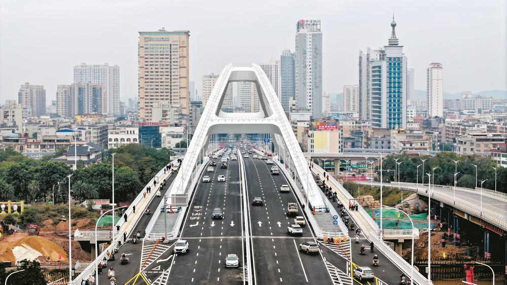 12月28日上午,历经一年多的紧张建设,永福大桥正式建成通车。这座横跨钦江、连接东西两岸的交通枢纽,以崭新的面貌为市民出行带来便利,也为平陆运河2026年建成通航奠定了坚实基础。