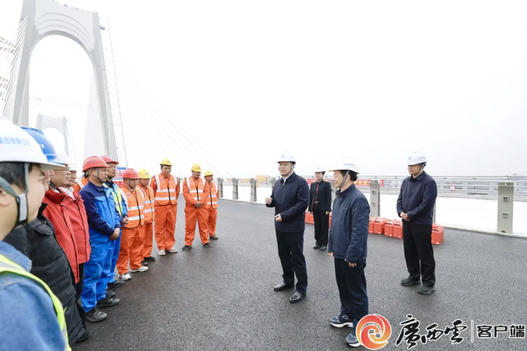 在平陆运河沙井钦江大桥施工现场,韦韬走上桥面,向春节期间坚守岗位的一线建设者送上新春祝福,希望大家保持昂扬斗志,严把质量关、安全关,科学组织施工,确保运河如期通航。 记者 邓华 摄