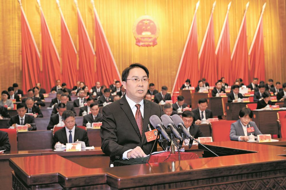 市长李玉成代表市人民政府向大会作政府工作报告。 谭乃豪 摄