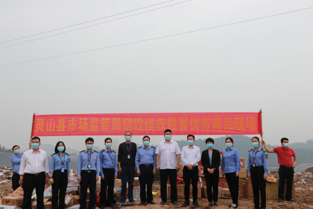 市场监管部门分别在灵山县、钦南区开展假冒伪劣产品集中现场销毁活动,有效地打击和遏制制售假冒伪劣商品的不法行为,达到查处一家、警示一片的效果,营造安全放心的市场经营氛围。