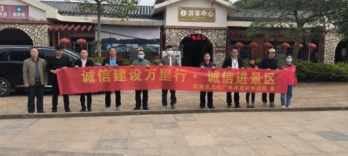 3月3日,钦州市钦南区文化广电体育和旅游局到那雾山森林公园景区、那丽镇喜来网吧和吾悦广场海豚音KTV开展“诚信建设万里行·诚信进商家”主题宣传活动,大力宣扬诚信经营、诚信待客理念,为广大群众营造良好的文旅消费环境。