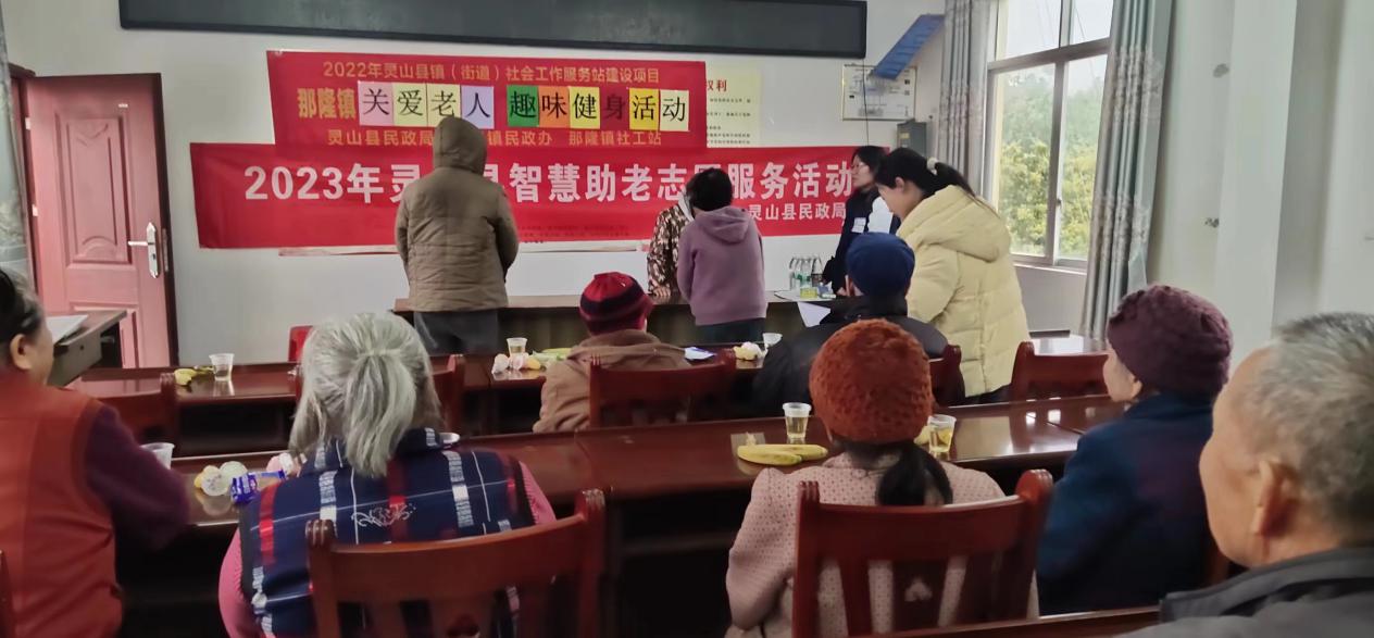 那隆镇社工站到枫木村委联合开展“关爱老人 趣味健身”和“智慧助老志愿服务”活动,活动中社工与老人通过小游戏互动,促进老人之间的友好合作,增进邻里感情,引导大家关注自身信用,提高自身诚信。同时社工和县局工作人员向老人们对手机防诈骗、防食品安全、倡导诚实守信行为规范、民政政策以及社工站的服务做宣传讲解。