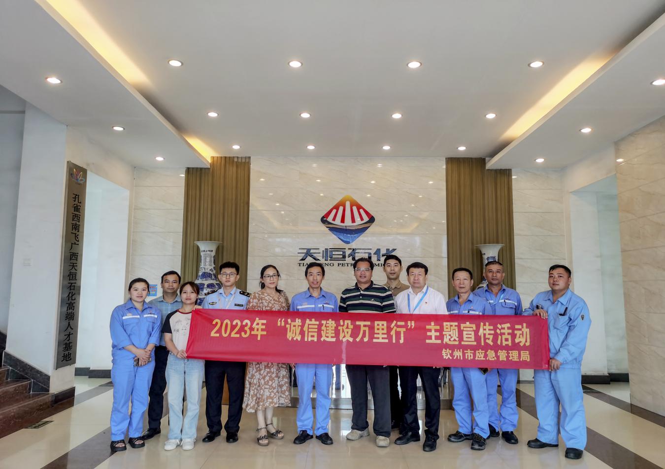 为进一步推进我市社会信用体系建设,不断提高企业诚信经营意识,广泛宣传诚信理念,弘扬诚信文化,营造诚实守信的良好社会氛围。2023年6月26日,钦州市应急管理局到钦州天恒石化有限公司开展“诚信建设万里行”宣传教育活动。