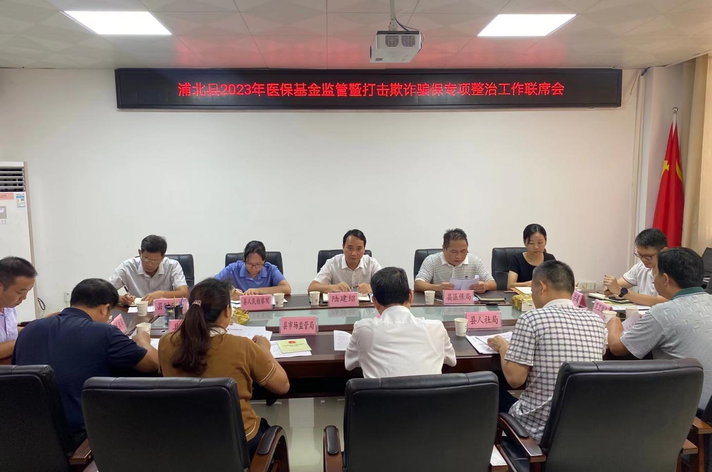 7月25日,浦北县召开2023年医保基金监管暨打击欺诈骗保专项整治工作联席会议,县人民政府副县长陆建绍出席并讲话,县医保局、县检察院、县公安局、县财政局、县卫健局等联席会议成员单位分管领导参加了会议,会议由县医疗保障局党组书记、局长黎亦辉主持。