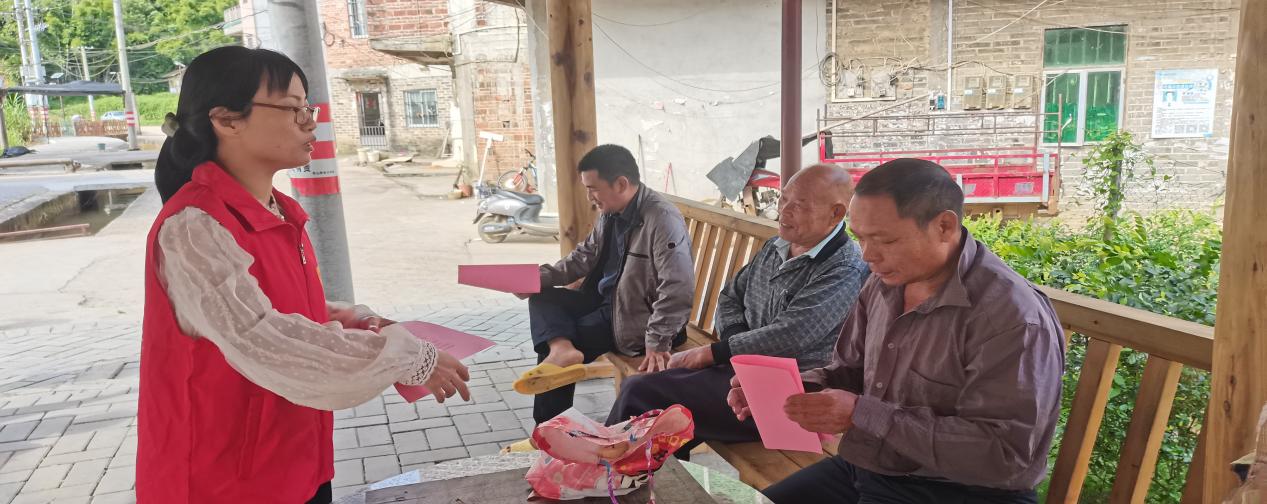 县统计局志愿者服务队一行十余人在洞口村宣传,发放宣传资料、讲解诚信知识,号召大家都讲诚信、树新风。