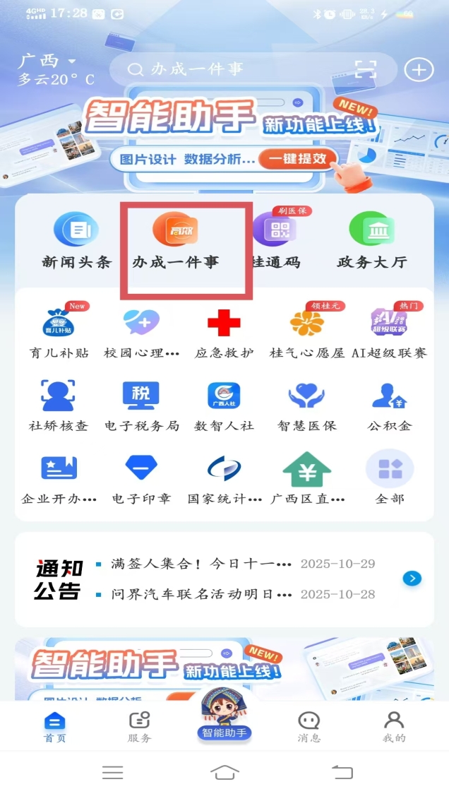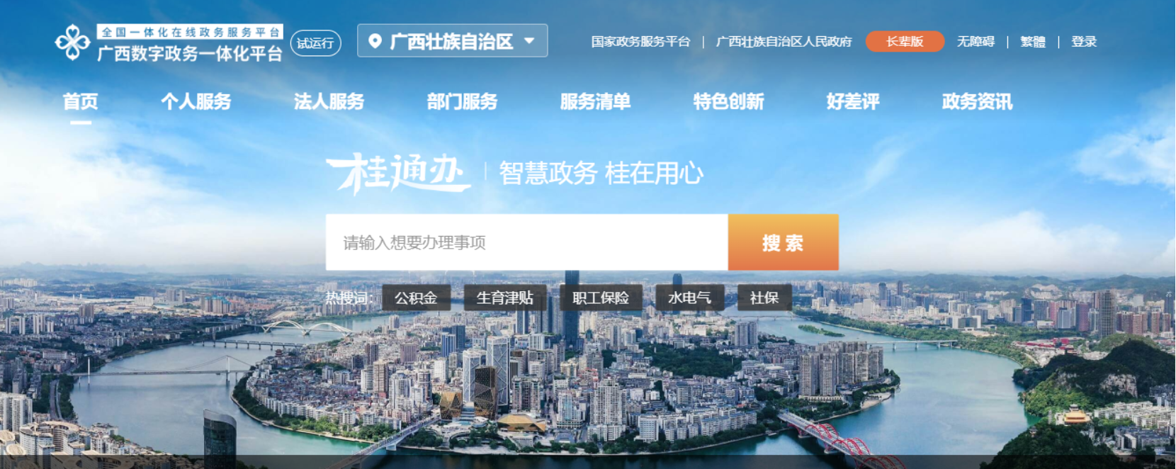 ①登录广西数字政务一体化平台(https://zwfw.gxzf.gov.cn/eportal/ui?regionCode=3&pageId=3cd3d403fb4443d5becb61375b2b093a)