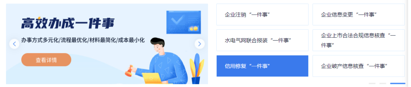 ②下拉找到“高效办成一件事”专区,点击“查看详情”进入专区页面。