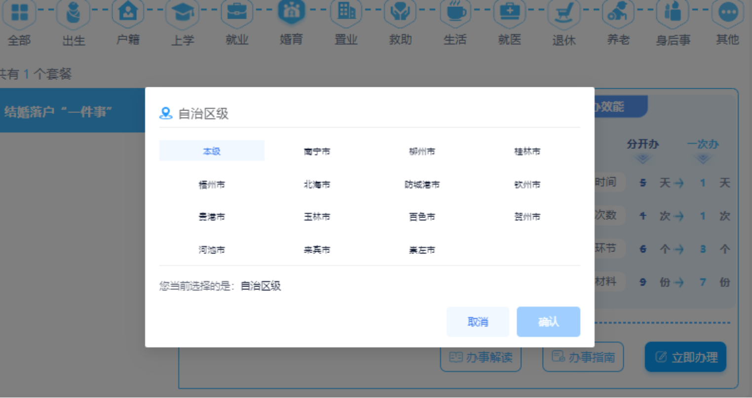 2.户口登记项目变更(婚姻状况),包含广西户籍居民结婚后婚姻状况变更和离婚后婚姻状况变更。