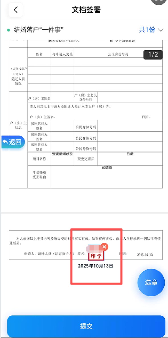 ⑤根据操作提示,完成电子签章。