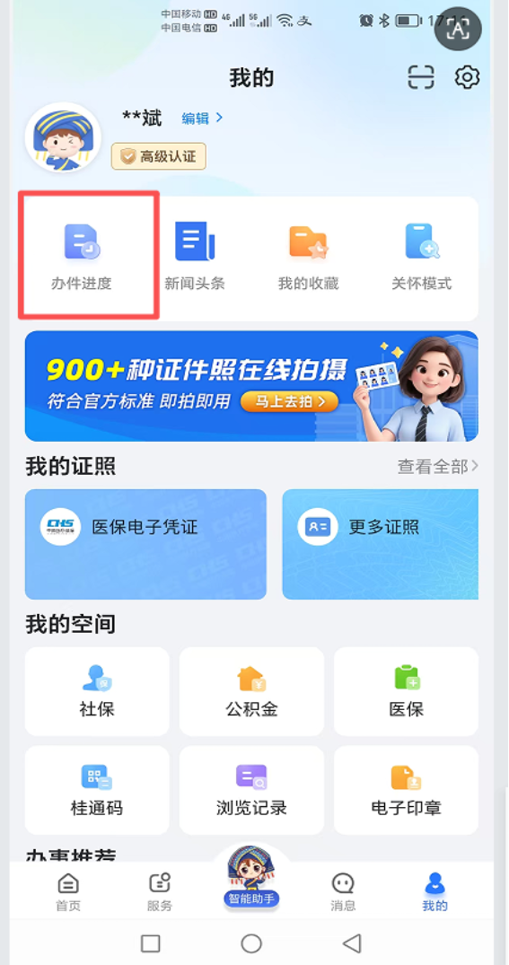 ⑥通过智桂通APP,点击“我的—办事进度”,可实时查看办事进度。