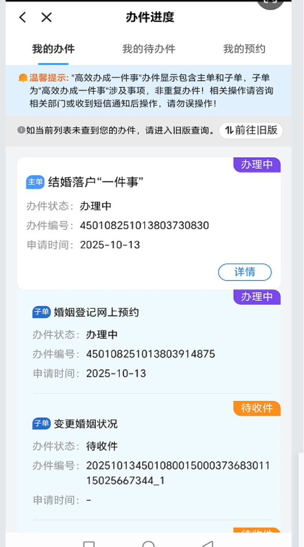 申请人可自行登录广西数字政务一体化平台或“智桂通”移动端“高效办成一件事”专区办理,或者到婚姻登记窗口或综合服务窗口进行线下办理,具体办理指南如下。