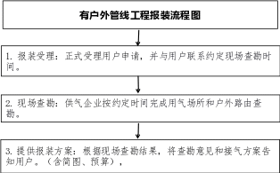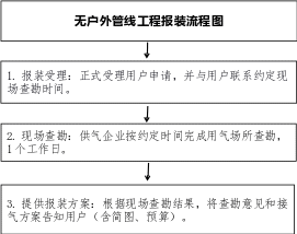 2.供气企业与用户双方洽谈及签订合同、市政燃气工程勘察设计、燃气设施施工安装、供气企业办理相关行政审批、压力管道质量监督检验、用户及客观条件等供气企业不可控制的时间,不计入用气报装时间内;