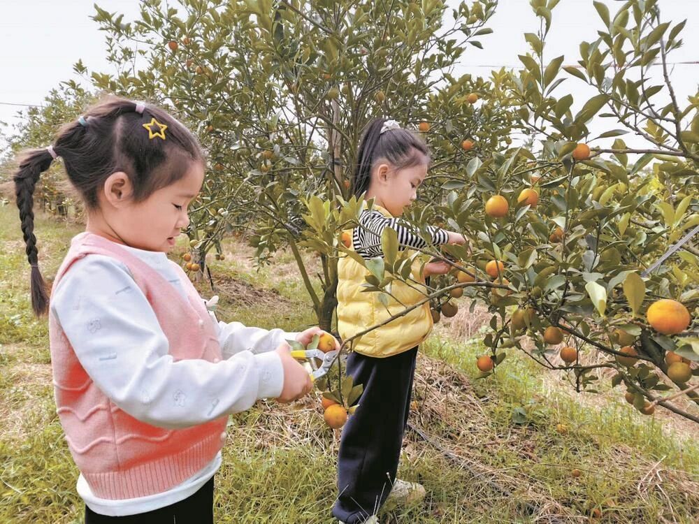 游客沉浸式采摘金桔。融媒体记者 梁 燕 摄