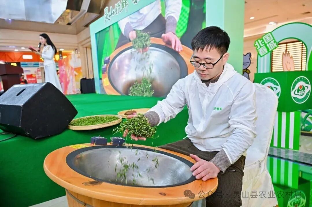 活动现场,灵山县制茶大师、“全国技术能手”梁先贤现场展示手工炒茶技艺,嫩绿的茶青经翻炒、揉搓、提香等工序变为条索匀整的干茶,香气四溢。随后,茶艺师展演了特色茶艺秀,温杯、洗茶、投茶、冲茶等动作行云流水,灵山早春茶“一芽一叶” 的鲜嫩形态尽收眼底,吸引市民驻足观看。