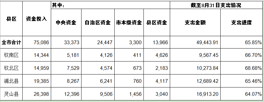 钦州市2025年衔接资金支出进度统计表(8月)