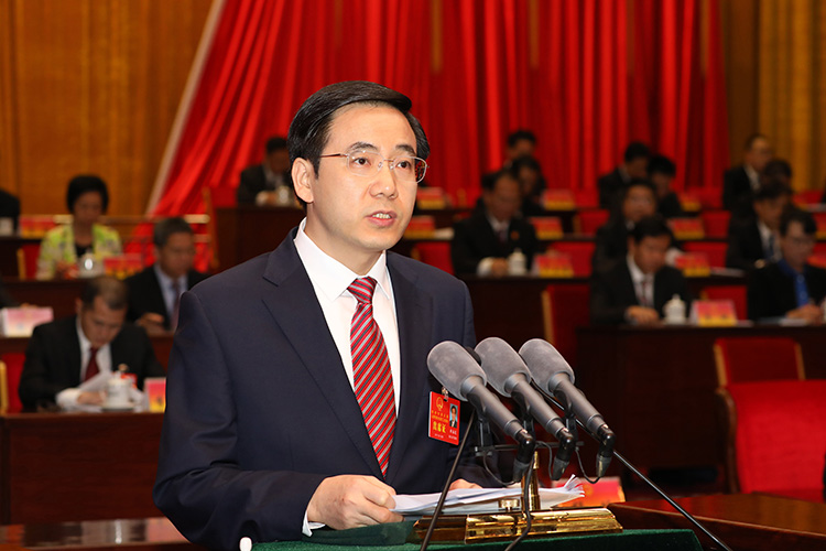 市长黄海昆代表市人民政府作政府工作报告。谭乃豪 摄