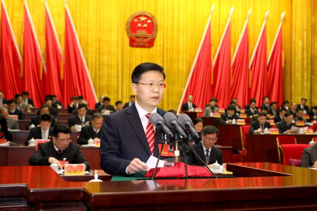 市长谭丕创代表市人民政府向大会作政府工作报告 谭乃豪 摄