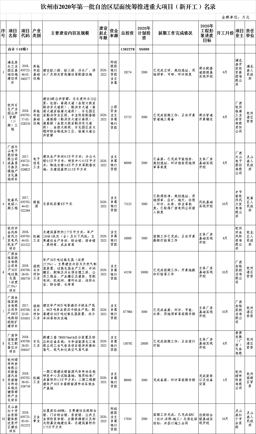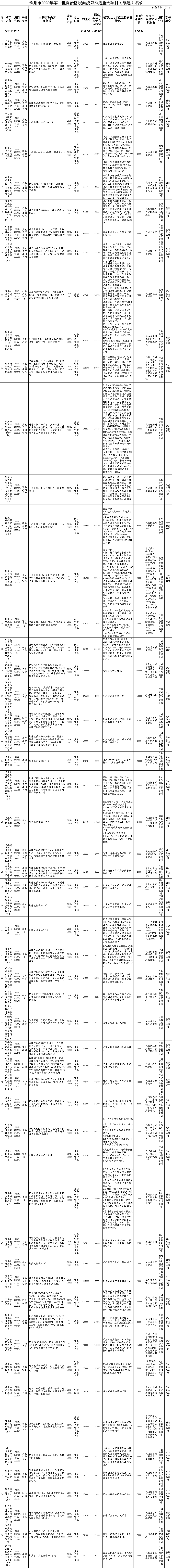 钦州市2020年第一批自治区层面统筹推进重大项目名录