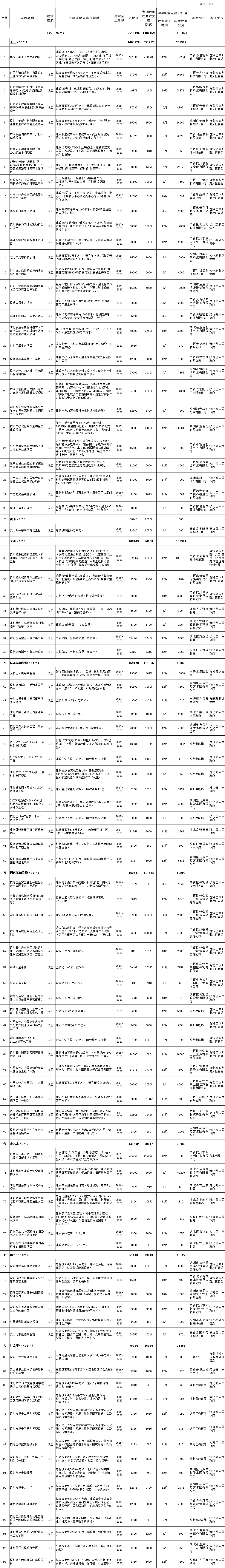 钦州市2020年总投资1000万元以上重点建设项目责任表 (计划竣工项目)