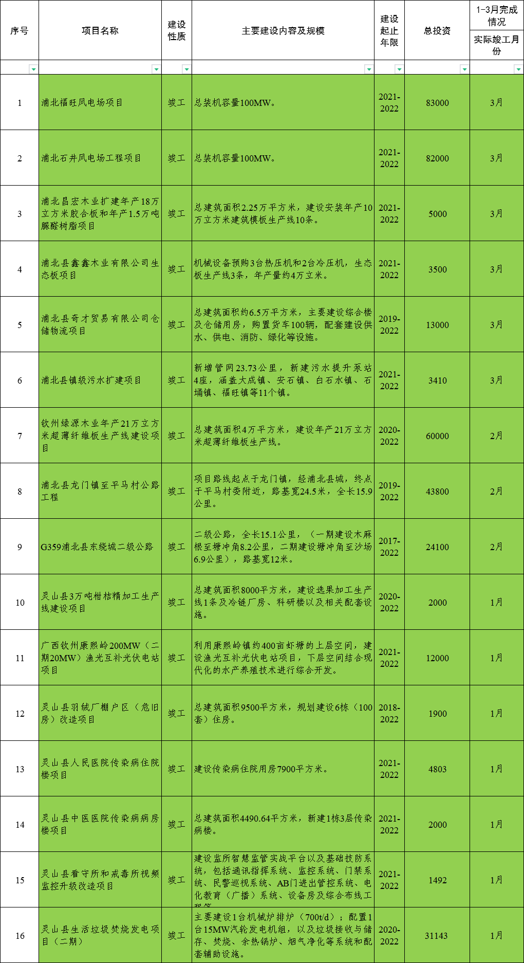 2022年重大建设项目竣工项目汇总表(1月-3月)