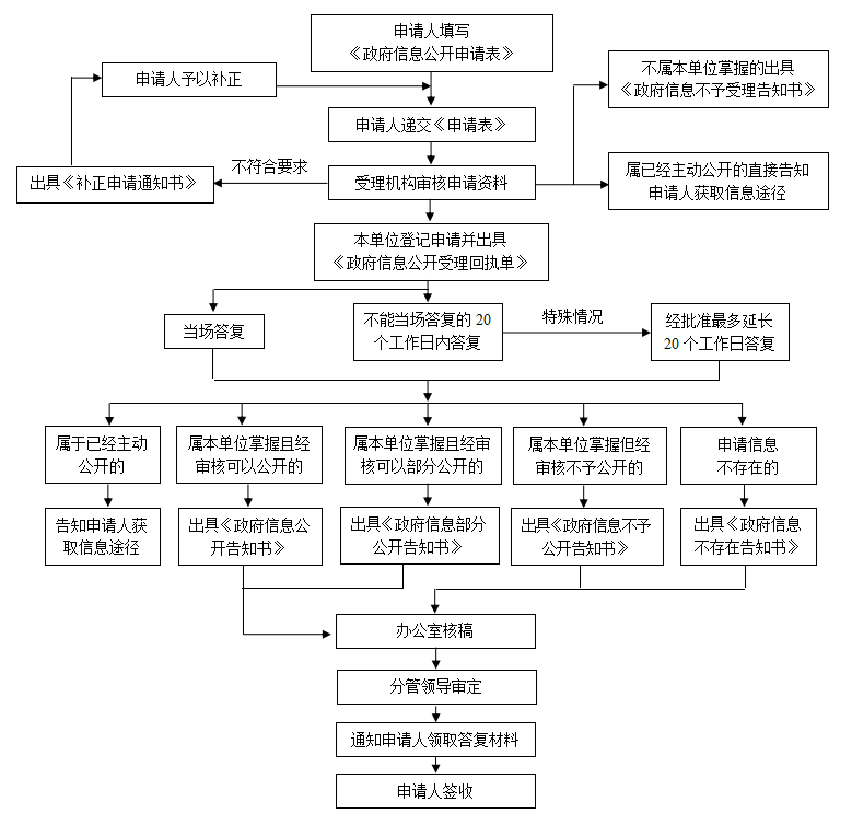 钦州市供销合作联社政府信息依申请公开流程图