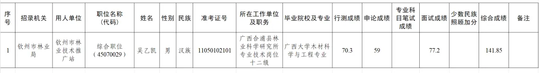附件:钦州市林业局2024年度考试录用参照公务员法管理单位工作人员拟录用人员公示名单
