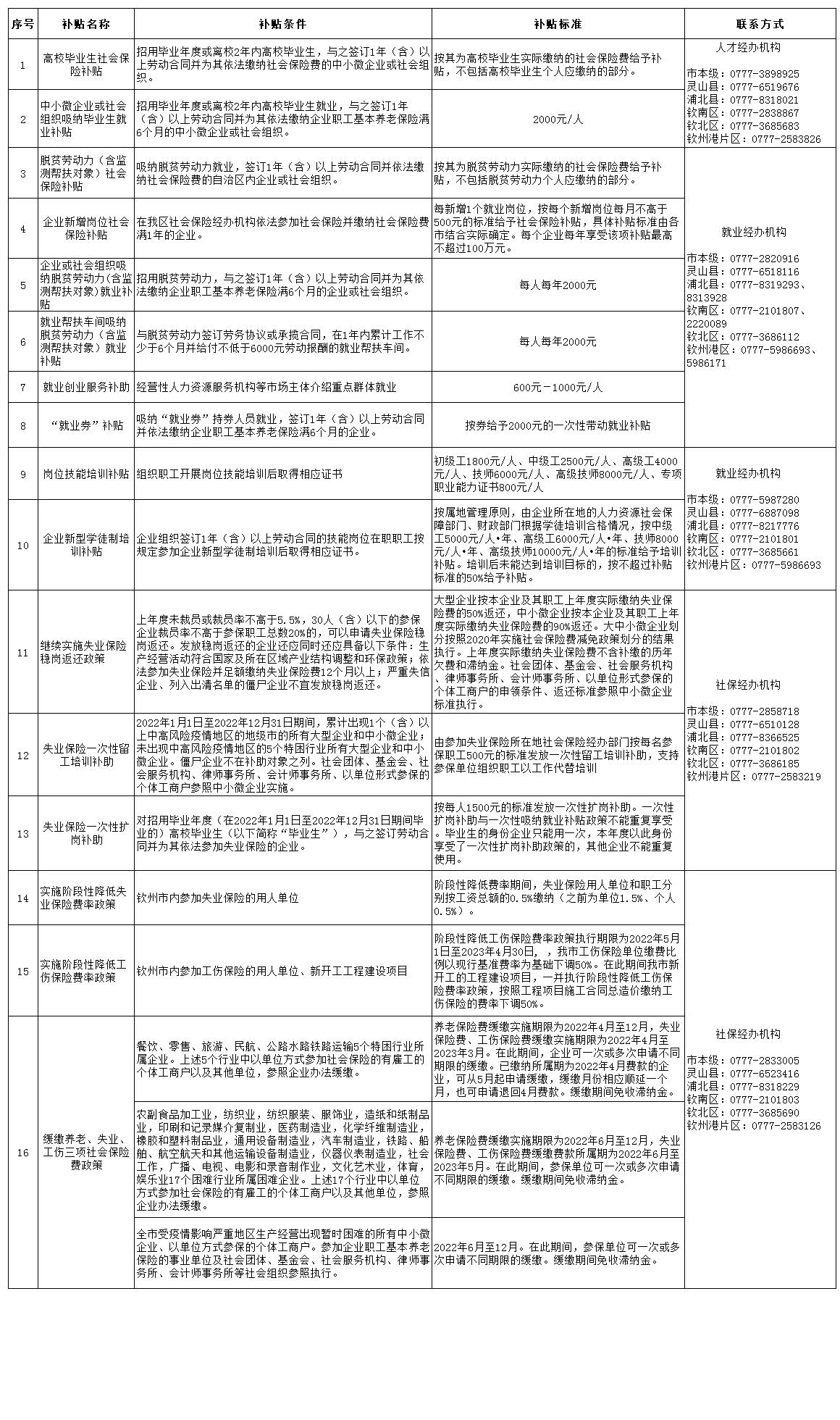 2022年钦州市人力资源和社会保障局“人社惠企”政策汇编