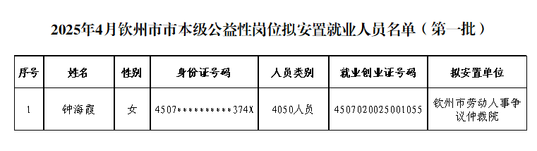 附件:2025年4月钦州市市本级公益性岗位拟安置就业人员名单(第一批)