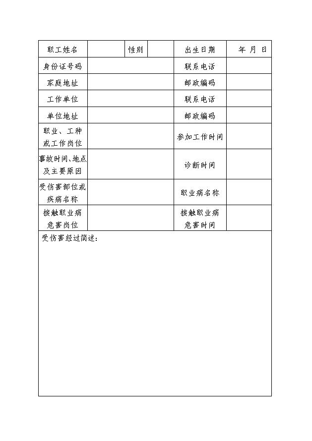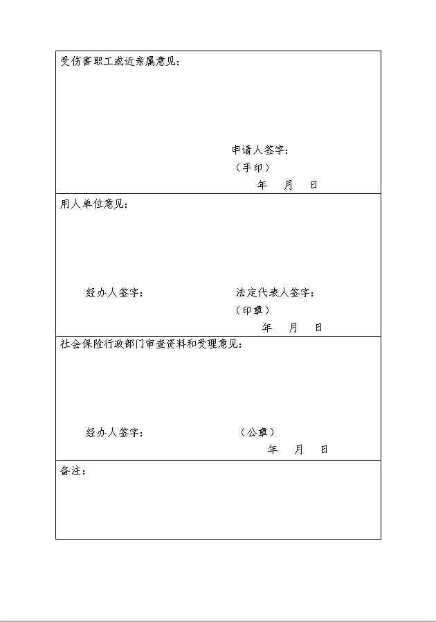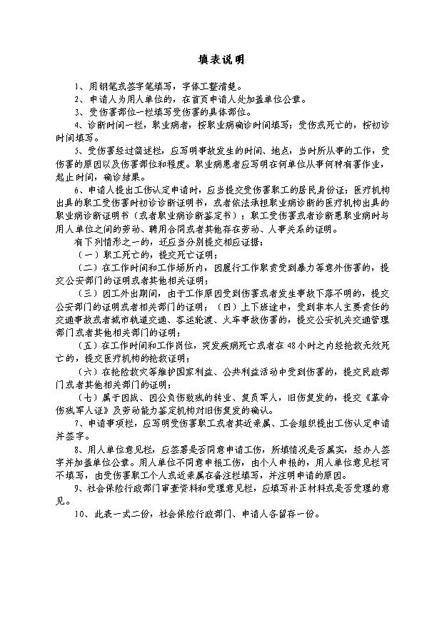 工 伤 认 定 申 请 表(A3版)请打印双面