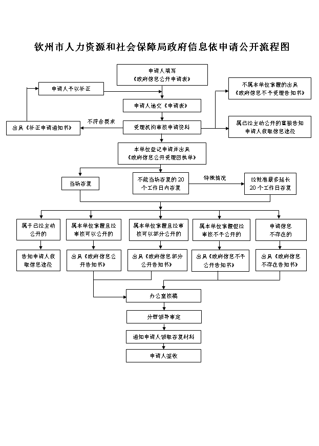 钦州市人力资源和社会保障局政府信息依申请公开流程图