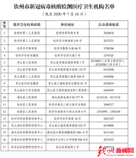 为做好钦州新冠肺炎疫情常态化防控工作,钦州市新型冠状病毒感染的肺炎疫情防控工作领导小组指挥部办公室制定并印发了《钦州市加快推进新冠病毒核酸检测工作方案》。