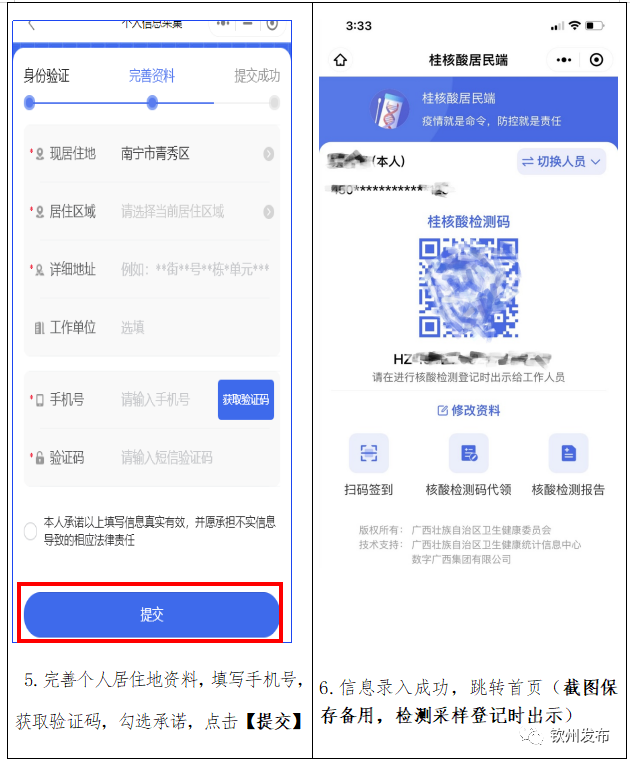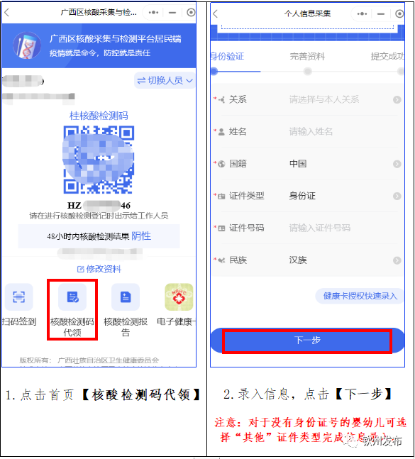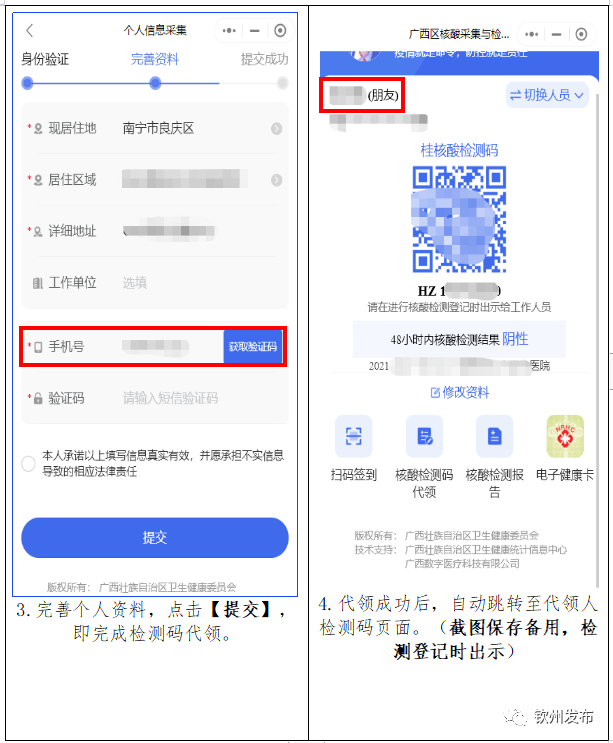 4.如老人、小孩无手机不便领取,请家人代为申领,并截图 “桂核酸检测码”或打印留存备用。