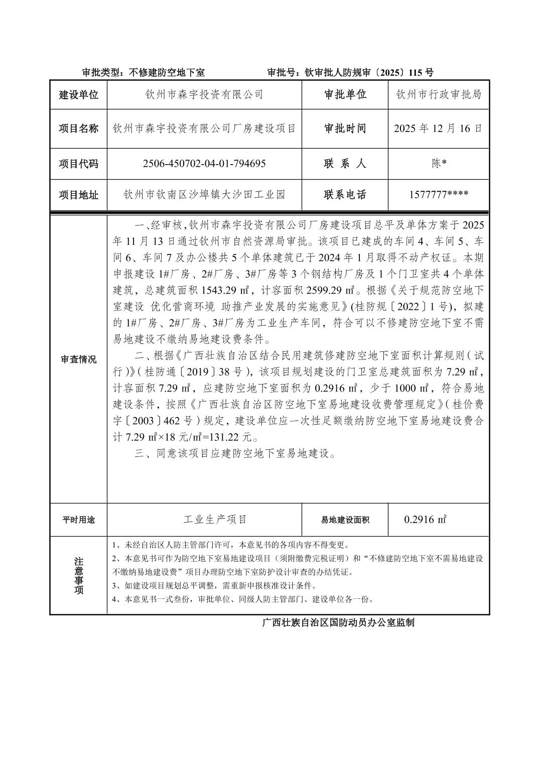 发文字号:钦审批人防规审〔2025〕115号