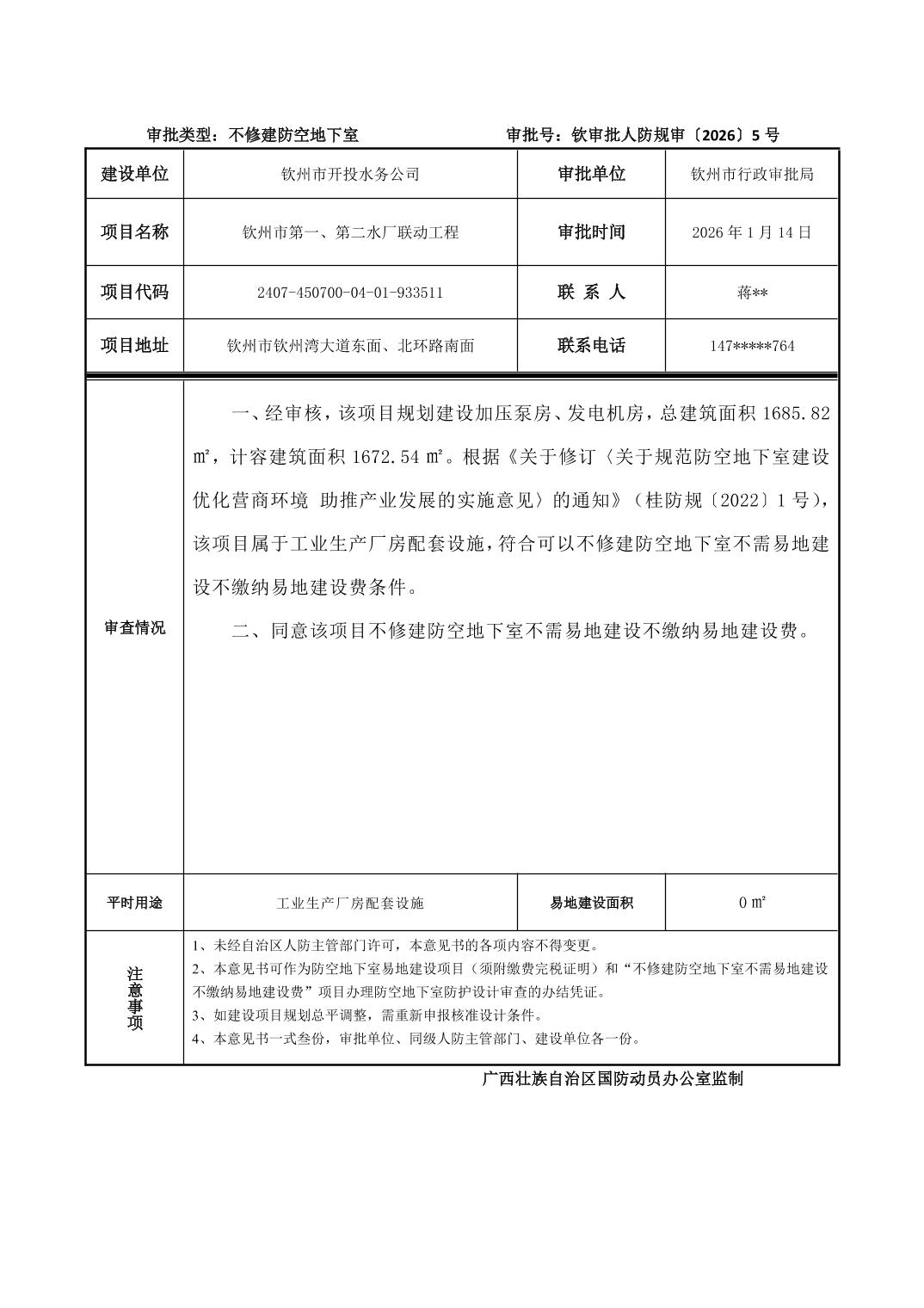 发文字号:钦审批人防规审〔2026〕5号